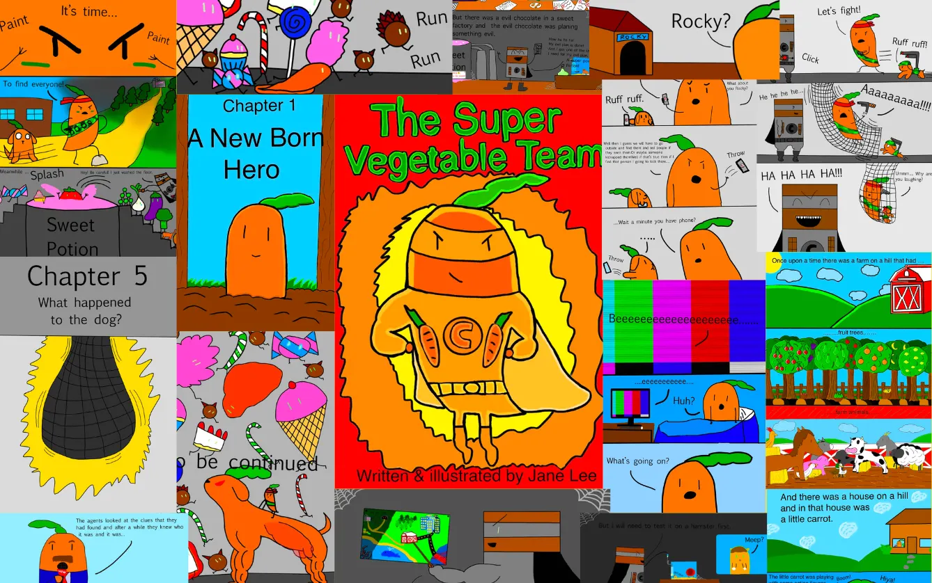 작은 당근의 이야기: ‘작은 당근’은 채소 농장에 살고 있습니다. 작은 당근은 모범생은 아니지만 뛰어난 상상력을 지녔으며, 슈퍼 히어로에 대한 깊은 애정을 가지고 있습니다. 어느 운명적인 날, ‘악당 초콜릿’이 마을에 나타나 강력한 '복종 다이아몬드'라는 보석을 사용하여 모든 사람들을 포로로 잡아갔습니다. 용감한 작은 당근은 자신의 충실한 개 ‘로키’와 함께 악당 초콜릿으로부터 마을을 해방시키기 위한 임무를 시작합니다.