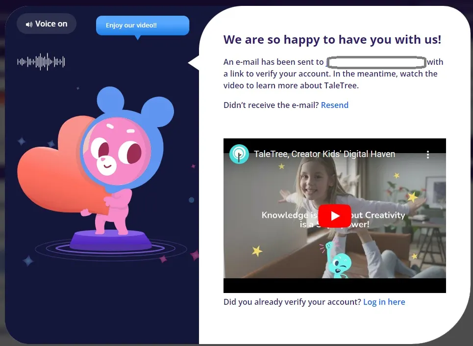 보호자 가입이 완료 되었어요! 입력하신 메일로 전송된, 메일을 확인해서 인증을 마쳐주세요.
