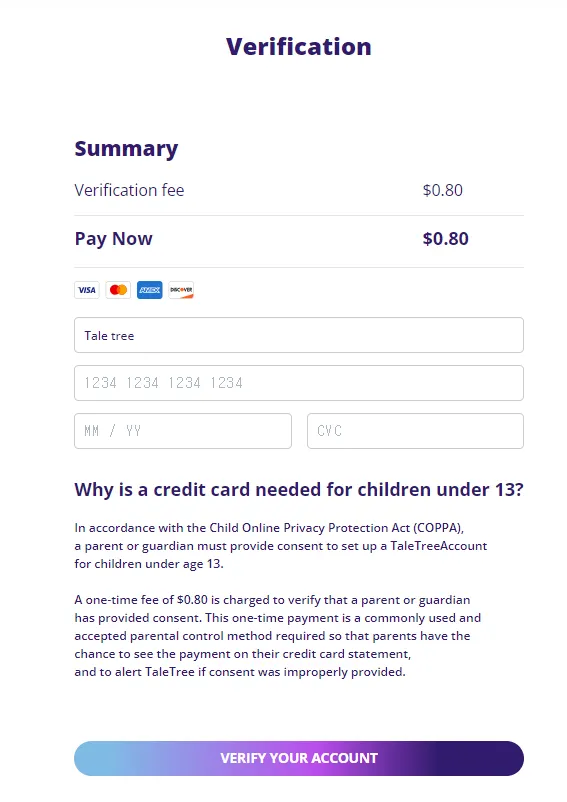 보호자의 신원을 인증하기 위해, 신용카드 결제를 통한 신원 확인 절차가 필요해요.