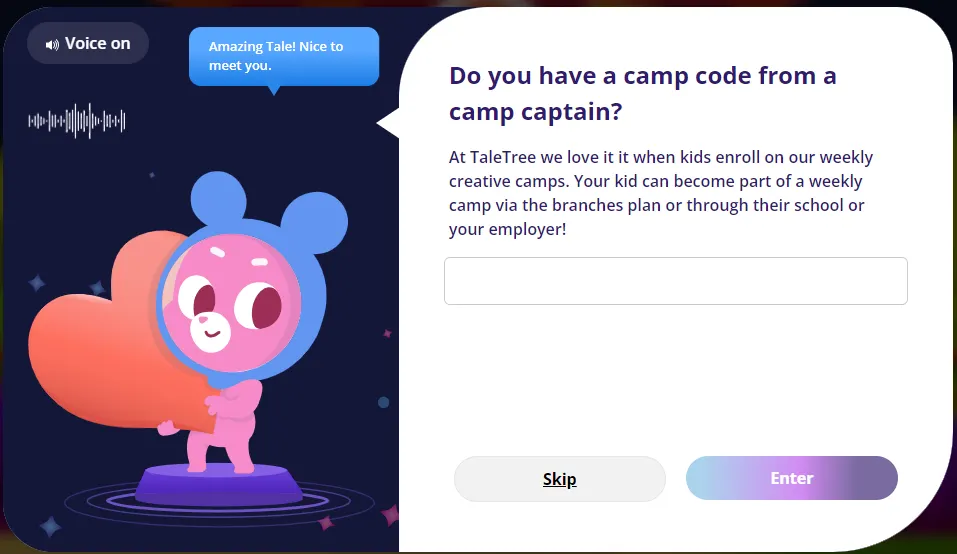 캠프에 들어가기 위에 캠프 캡틴에게 전달 받은 캠프 코드가 있다면 입력해주세요!