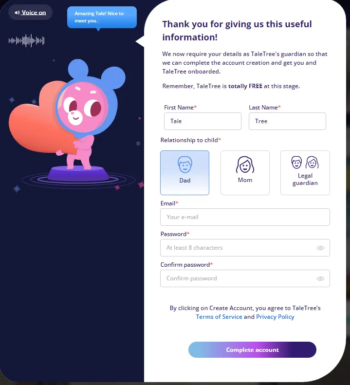 테일트리에 접속하고, 아직 생성된 보호자 계정이 없다면